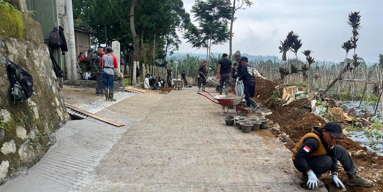 Kerja sama antara TNI dan Pemerintah Desa untuk membanguna jalan desa sepanjang 1,3 Km , agar dapat menunjang akses pertanian terhadap warga desa.